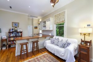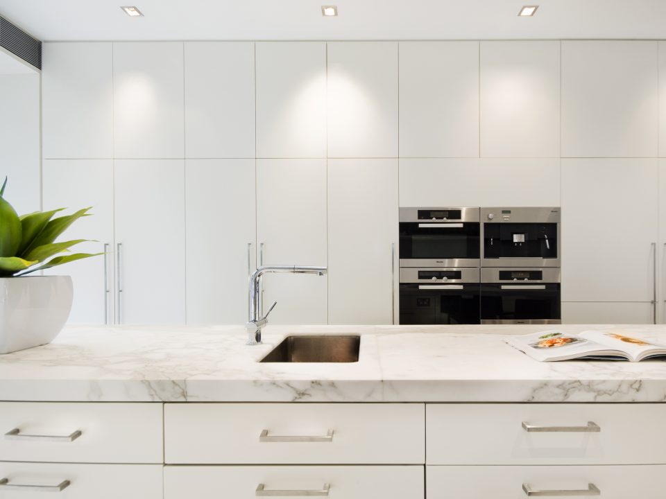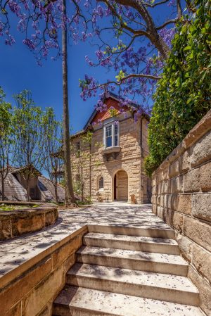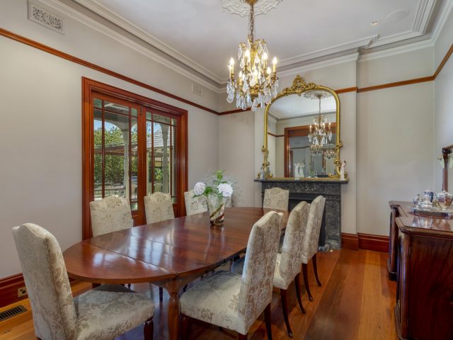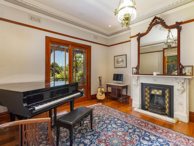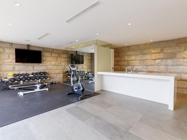 The more contemporary addition to the home contains an opulent Calacatta marble kitchen and informal living zone embraced in glass.